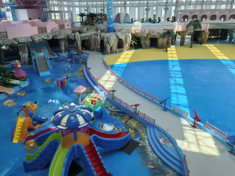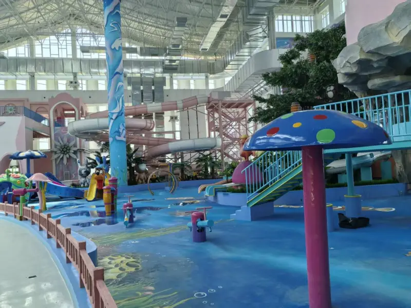 انڈور واٹر پارک میں سنسنی خیز پرکشش مقامات شامل ہیں جیسے ایک بڑی لہر کا تالاب ، کاہل دریا ، دیو فنل سلائیڈ ، قوس قزح کی سلائیڈ ، اور تتلی سلائڈ کے ساتھ ساتھ منی واٹر سلائیڈز اور چھوٹی قوس قزح کی سلائیڈز جیسے بچوں کے لئے موزوں سہولیات۔ اس کے علاوہ ، انفینٹی پول اور سپا پول کے ساتھ ساتھ گھر کے اندر اور باہر دونوں ہی 33 مختلف تیمادار گرم موسم بہار کے تالاب ہیں۔